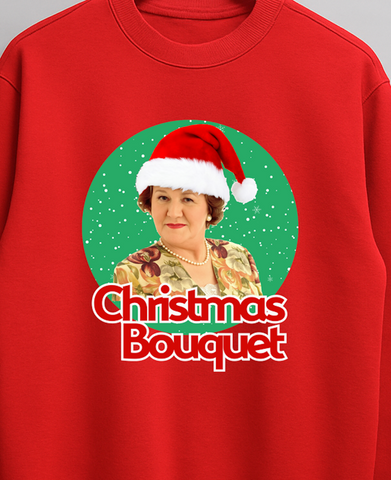 Featuring a humorous bouquet design inspired by Hyacinth Bucket and “Up Appearances”, this crew neck jumper combines festive style with playful charm. Made from soft, premium cotton-blend fabric, it’s ideal for Christmas parties, jumper days, or cosy winter evenings at home.